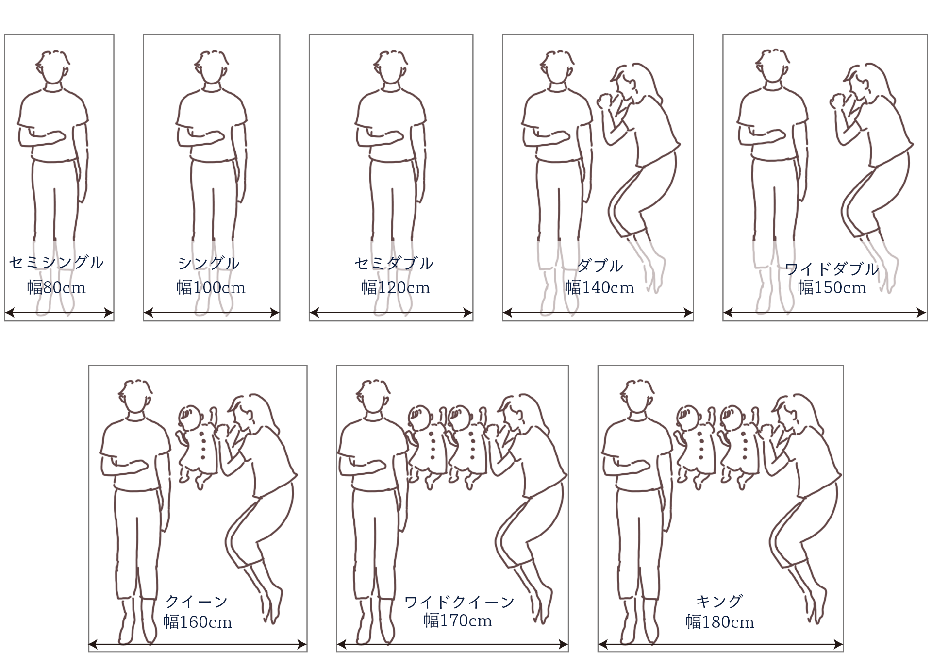 | ワイドダブル | 幅150cm | 大人2人がゆったり寝れるサイズです。 |