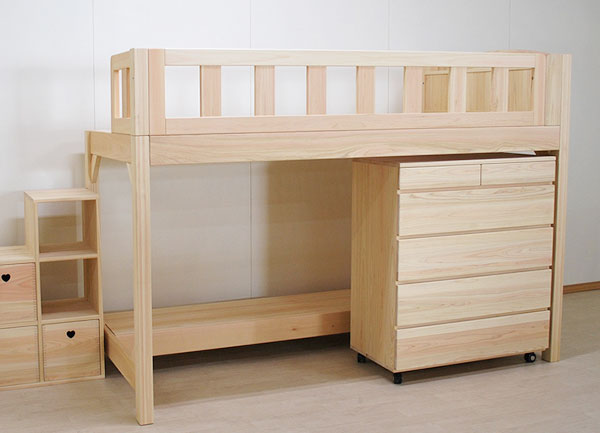 ベッド用の柵は、落下防止等、人の安全を守るだけでなく、マットレスのズレや布団の落下防止にも役立ちます。ひのき造りの木製の柵なら見た目も触り心地も温かいです。