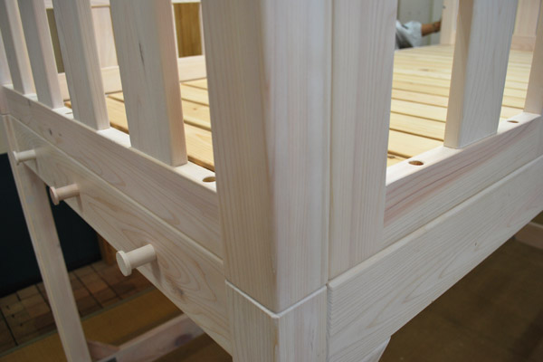 自然塗料の白塗装 ロフトベッドオプションでカーテンレールも設置木目が見える白なので画像では さらにわかりにくいです。NO1204018幅1050 長さ2130 高さ1470 寝台部分の高さ1070寝台部分 寝具の乗るサイズは1000×2010です シングルの敷き布団の敷けサイズです。フック3個引っ掛けカゴ 1個柵 高さ30cm 長さ50cm 2枚柵 高さ30cm 長さ100cm 1枚 About The Authorhinoki-bed2005年より、国産ひのき材を使用したオーダー家具のネット販売を開始し、日本全国へ受注生産・発送を行っております。20年超えてオーダー家具づくりに携わり、お客様のご要望に真摯に耳を傾けながら製品改良を重ね、品質と機能性を高めてまいりました。これからも信頼いただける家具づくりを続けてまいります。ひのき家具専門店 ヒノキ・ワークスFollow :最近の投稿2015年5月23日オーダーベッドひのき棚付ベッド可愛い雰囲気カーブしたヘッド NO15030342015年5月15日オーダーベッド畳ベッド ヘッドレス 柿渋黒仕上げ NO15020432015年5月14日白以外の着色黒い畳ベッド NO15030202015年4月17日階段等のついたオーダーベッド棚付ロフトベッドと踏み台 NO15030172015年4月16日オーダーベッド棚付畳ベッド セミダブルサイズ NO15020442015年4月1日オーダーベッド足元にハシゴひのきロフトベッド幅110寝台高さ130cm NO1501024hinoki-bedの記事一覧
