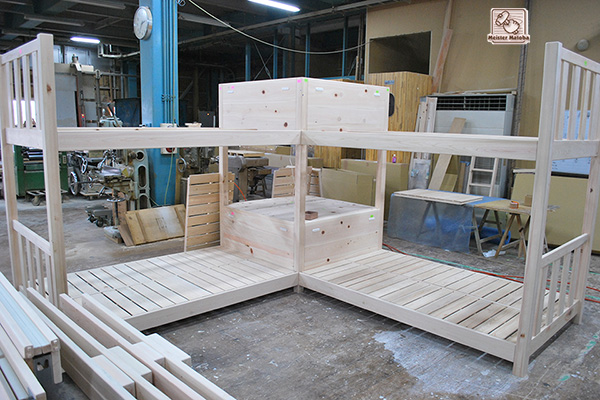 将来上下のベッドは個別にしないということで 固定の二段ベッドです。