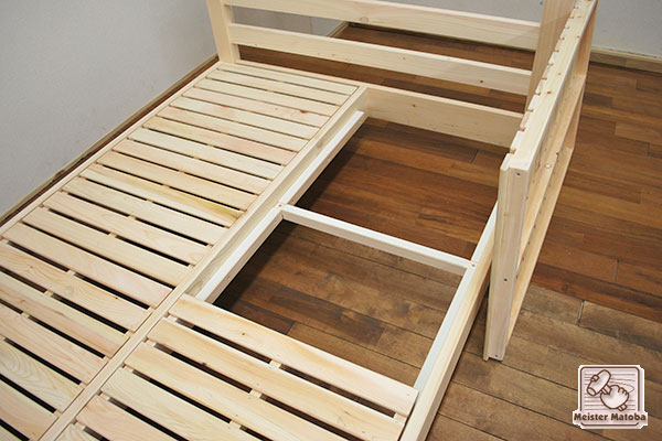 中心にもサイドフレームがあり強度がある ひのきベッドです。