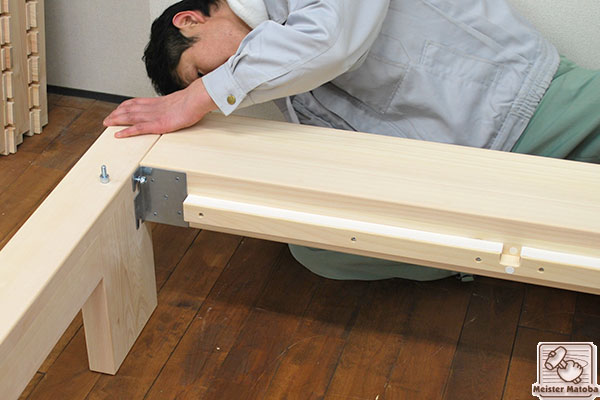 このとき サイドフレームを支えるのに仮の板を同封していますので 使ってください。