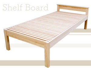 このひのきベッドのヘッドボードには、奥行約10cmの棚板を設けています。